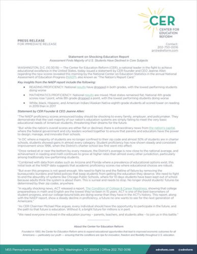 Read CER’s Statement on the 2019 Nation’s Report Card.