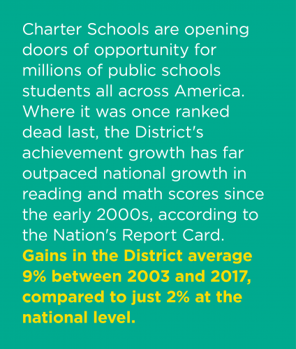 change in education governance that has transformed American public education. Nowhere is this more evident than in our nation’s capital. Just as in several other cities after robust reform, charters have had an impact not only on student performance, but also on the broader economic landscape.